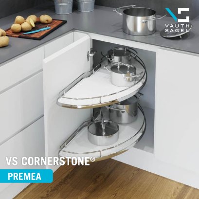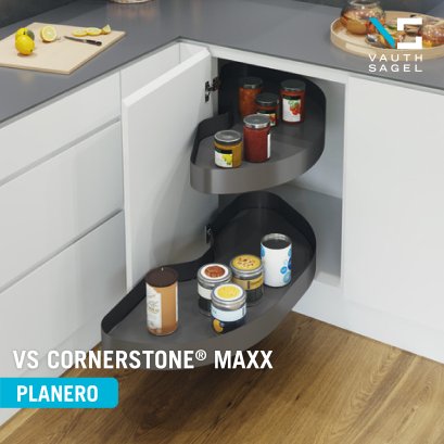 เมื่อคุณเปิดตู้มุมในครัว คุณต้องการอุปกรณ์จัดเก็บที่เคลื่อนออกมาจากมุมได้เต็มที่ โดยไม่ขวางตู้ข้าง ๆ CORNERSTONE MAXX คือ คำตอบ ถาดวางของจะเลื่อนออกมาด้วยแรงส่งจากกลไกภายใน ด้วยดีไซน์ที่เสมือนลอยได้ (Floating Design) ถาดมีขนาดใหญ่และแข็งแรง การติดตั้งง่ายดาย Upgrade ชุดครัวขึ้นได้ในทันที