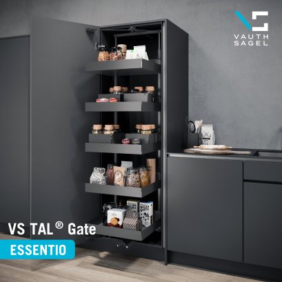 ชุดตู้สูงนี้เปิดมุมมองที่ดีที่สุดในชุดครัว ได้รับการพัฒนาขึ้นเพื่อพื้นที่การจัดเก็บสูงที่สุดและการเข้าถึงที่ง่าย จึงถือได้ว่าชุดตู้สูงรุ่นนี้ เป็นดั่งมาตรฐานใหม่ของความสะดวกสบายและดีไซน์ เมื่อเปิดหน้าบานกลไกจะเลื่อนส่วนจัดเก็บออกมาสู่ผู้ใช้ในจังหวะเดียว