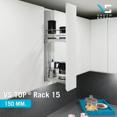 ตะแกรงเลื่อนดึงออกแบบพื้นฐานรุ่นนี้ มีความแข็งแรง และกว้างเพียง 15 ซม. แต่ตอบโจทย์ทุกอย่างที่ตะแกรงจัดเก็บควรมี เช่น สามารถมองเห็นของที่เก็บอยู่ทั้งหมดในคราวเดียว หยิบของได้ง่าย และเป็นระเบียบ เหมาะอย่างยิ่งกับการเก็บขวดน้ำมันพืชชนิดต่าง ๆ ขวดน้ำส้มสายชู และเครื่องใช้ในครัวอื่น ๆ ที่จะทำให้การทำครัวนั้นสนุก