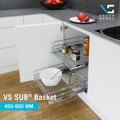ตะแกรงเก็บของแบบดึงออก พร้อมระบบ Soft - Closing สำหรับการติดตั้งภายในตู้บานเปิด เพื่อเป็นลิ้นชักภายใน