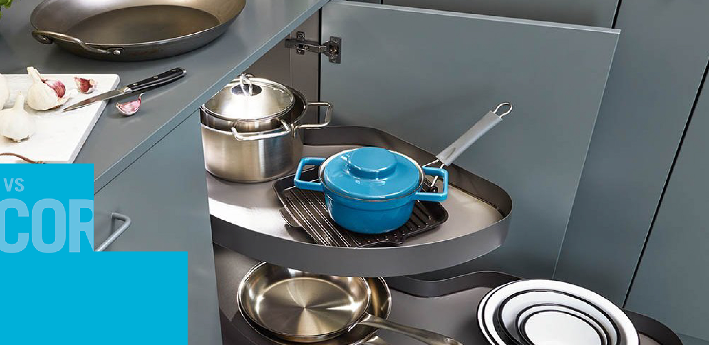 เมื่อคุณเปิดตู้มุมในครัว คุณต้องการอุปกรณ์จัดเก็บที่เคลื่อนออกมาจากมุมได้เต็มที่ โดยไม่ขวางตู้ข้าง ๆ CORNERSTONE MAXX คือ คำตอบ ถาดวางของจะเลื่อนออกมาด้วยแรงส่งจากกลไกภายใน ด้วยดีไซน์ที่เสมือนลอยได้ (Floating Design) ถาดมีขนาดใหญ่และแข็งแรง การติดตั้งง่ายดาย Upgrade ชุดครัวขึ้นได้ในทันที